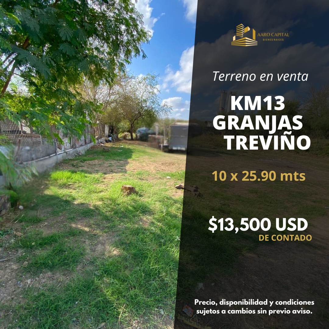 Terreno en venta ubicado en la colonia Granjas Treviño Km 13 con medidas de 10 x 25.90 metros